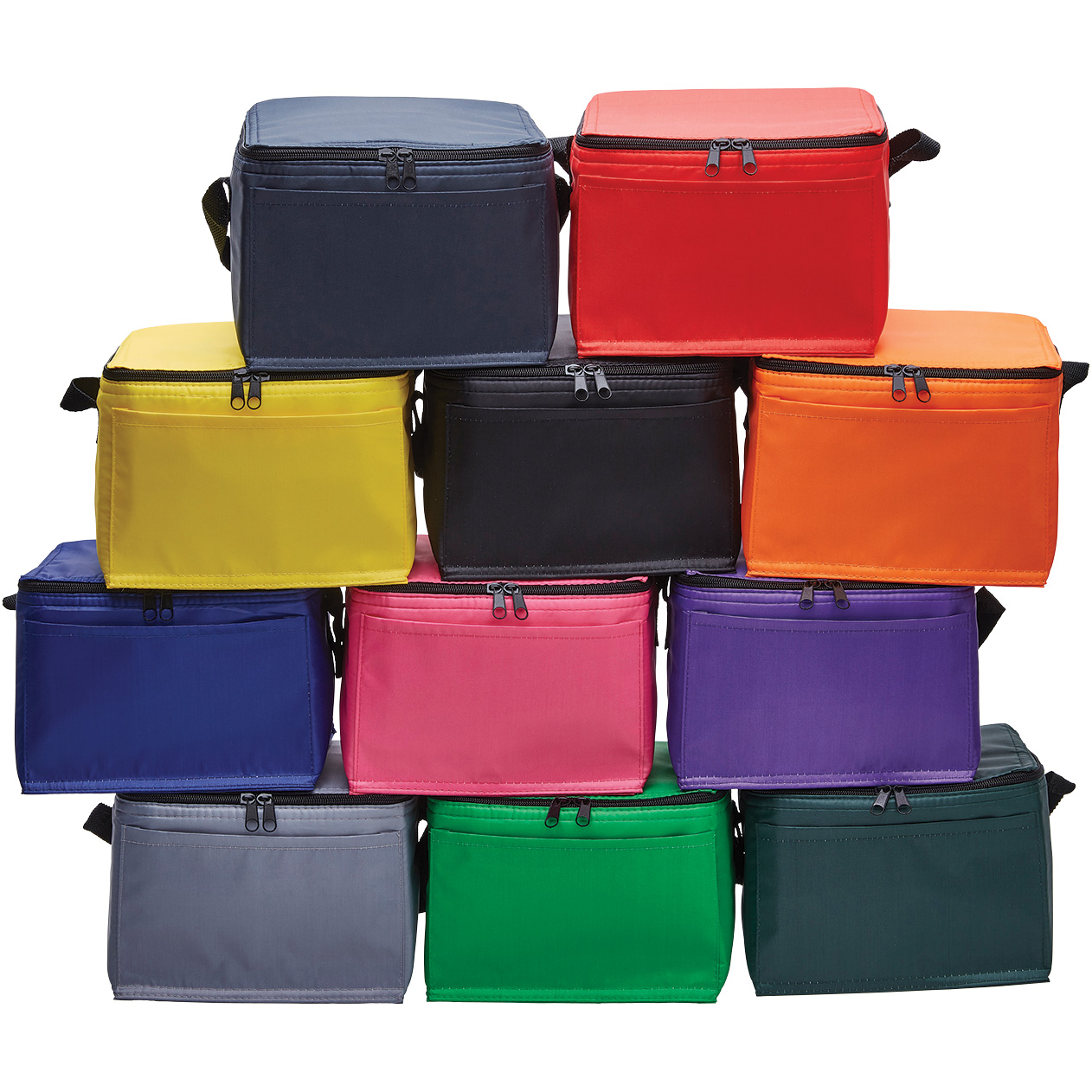 These lightweight and convenient cooler bags are for people with places to go! Its thermal lining, allows drinks to stay cool for an extended period of time. The bags are made from durable 210D polyester fabric with a carrying capacity of 4.5 litres and 6-can capacity. They also feature a front slip pocket, zippered main compartment, and a webbing carry strap.