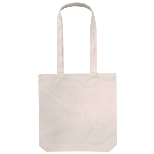A calico bag with bottom gusset to carry bulk items for you, featuring your logo decoration.