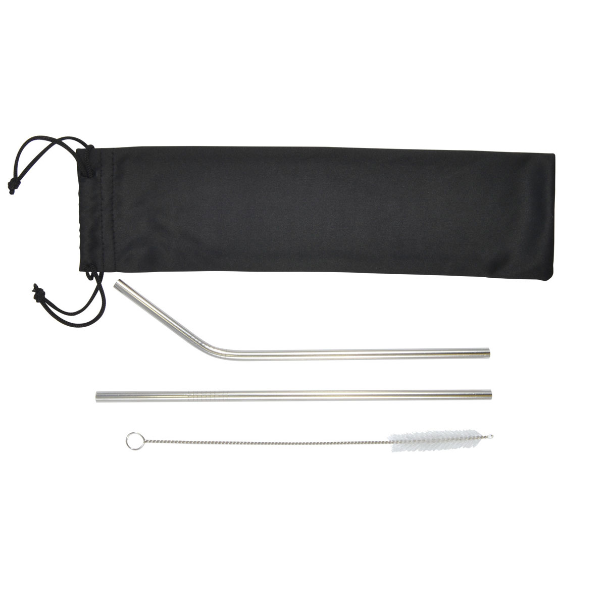 Promote environmental awareness with these sets of stainless steel drinking straws. It includes 1x bent and 1x straight straw with a cleaning brush inside a black drawstring pouch. They Can be used for either hot or cold drinks and are dishwasher safe (recommended cleaning with the brush provided). They will promote your logo and raise brand awareness. Pricing is shown for decoration on the bag and for an additional cost laser engraving on one or both of the straws is available.