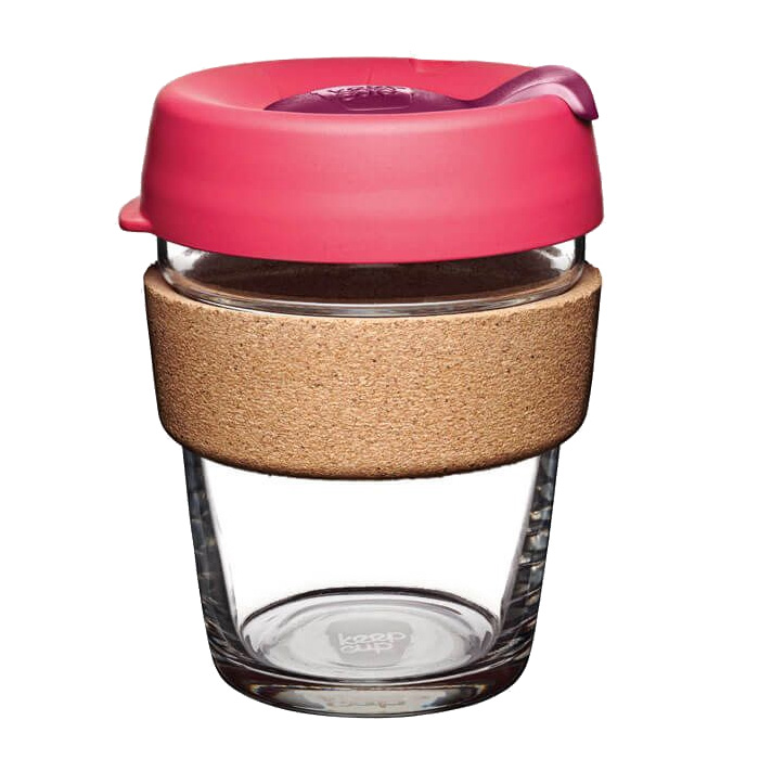 Take your snack and drink on the go with you all in one cup! With a blown tempered glass cup, fashionable cork band and plastic lid/plug they really stand out! Made by Australia's favourite re-usable coffee cup supplier and have the KeepCup branding throughout the cup. You can Mix n Match colours to create a coffee cup that will best compliment your brand. Decoration shown is for print on the band, more options are available - ask us for more information!