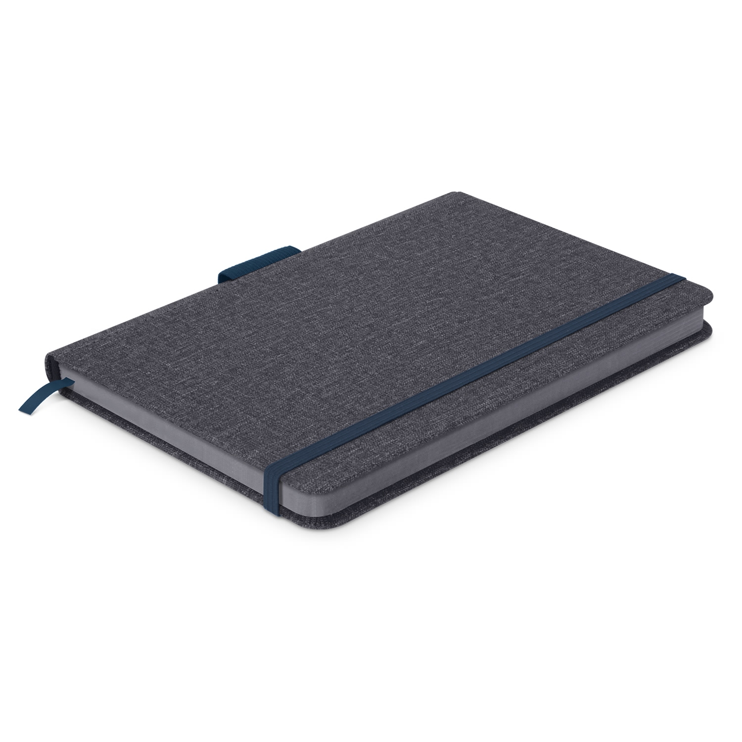 A premium notebook with medium size will surely help you keep your notes. It features a hardcover with heather style PU which gives it a trendy woven look. It has 96 colour edged leaves (192 pages) of high-quality 80gsm lined cream paper. Other features include: matching stitching, an elastic pen holder in the spin, a book mark ribbon and an elastic closure band. With a prominent branding area, your logo will surely get noticed with these notebooks!