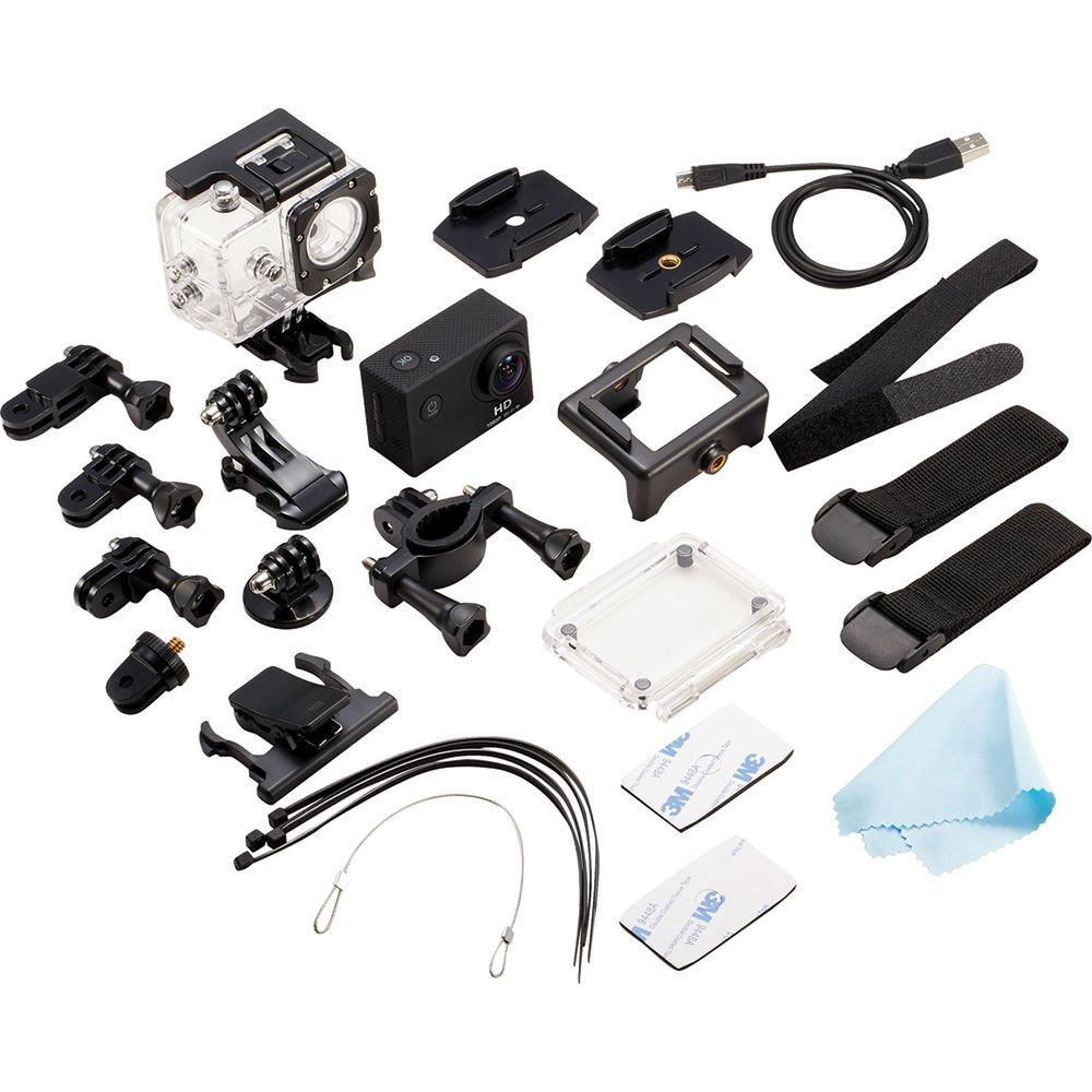 • Includes waterproof case, helmet mount, handlebar mount